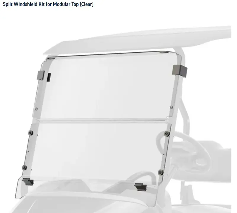 E-Z-GO RXV Elite >2024 Model year fold down windscreen for new style modular roof type.